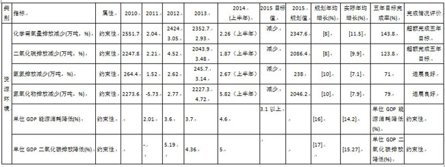 表7 国家“十二五”规划主要指标实施情况(2011-2014年)(之三)