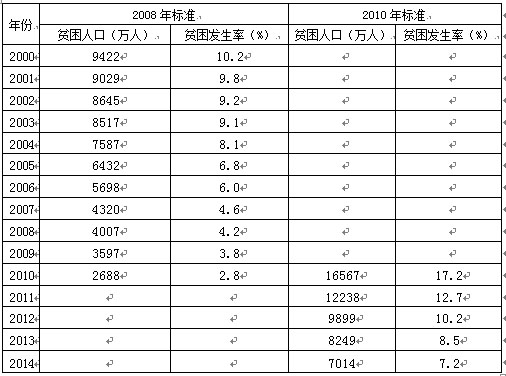 表3 全国农村贫困人口(2000-2014)