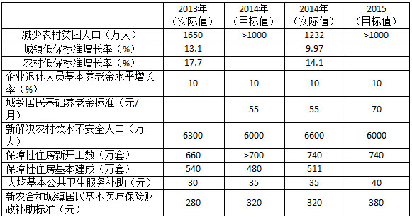 表2 主要民生指标与实际结果(2013-2015)