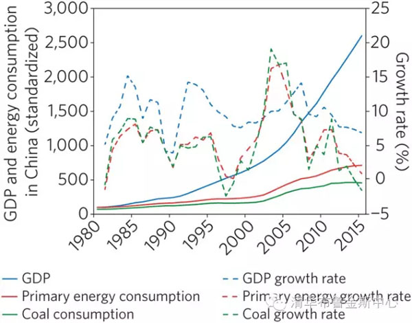 改革开放后的30多年,中国经济的快速增长成为世界经济史的奇迹。这一奇迹是在大规模化石能源消费基础上建立的。煤炭消费量从2000年的13.6亿吨上升到2013年的42.4亿吨,年均增长率高达12%,2015年消费量占到了全世界消费总量的50%左右。可以说,中国过去的经济增长是一种典型的煤炭驱动型增长。同时,大量的煤炭消费也成为空气污染和二氧化碳排放的重要根源。