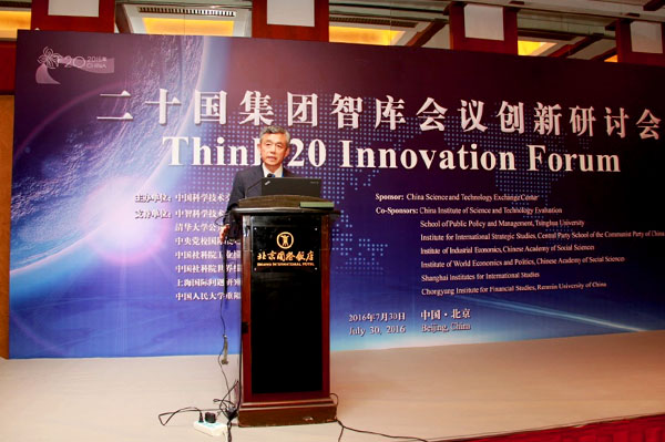 7月30日,薛澜作为共同主席,与土耳其经济政策研究基金会多边贸易研究中心主任博兹库尔特.阿郎共同主持了此次T20会议的压轴论坛——“T20创新研讨会”。T20创新研讨会以“构建协同、包容、充满活力的全球创新环境”为主题,与会者围绕实施创新驱动发展的途径和最佳实践、G20国家综合创新竞争力研究及预测、科技创新政策体系比较研究、科技创新在促进可持续发展中的角色和定位、新工业革命与数字经济、开放科学原则、知识产权保护、创新文化建设等议题进行了研讨和交流。来自中国、欧盟、德国、土耳其、法国、孟加拉国等二十国集团成员国的智库代表,国际电信联盟、国际知识产权组织、联合国工业发展组织、联合国教科文组织等国际组织代表以及来自华为技术有限公司等知名企业负责人作了大会发言。