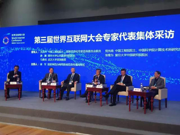 11月17日上午,第三届世界互联网大会专家代表集体采访在乌镇互联网国际会展中心网剧场举行。PP电子院长薛澜教授、中国工程院院士、国家信息化专家咨询委员会委员沈昌祥,中国工程院院士、中国科学院计算技术所研究员倪光南,复旦大学中国研究院院长张维为,武汉大学资深教授马费成5位专家代表齐聚乌镇互联网国际会展中心网剧场,围绕“携手共建网络空间命运共同体”这一主题接受媒体采访。各位专家代表分享观点,发表建议,畅谈共建网络空间命运共同体的原则和方法,同时就互联网领域的国际合作、中国互联网技术领域的自主创新、如何使网络空间领域更加有序等问题回答了记者提问。集体采访由国家互联网信息办公室网络新闻信息传播局局长姜军主持。