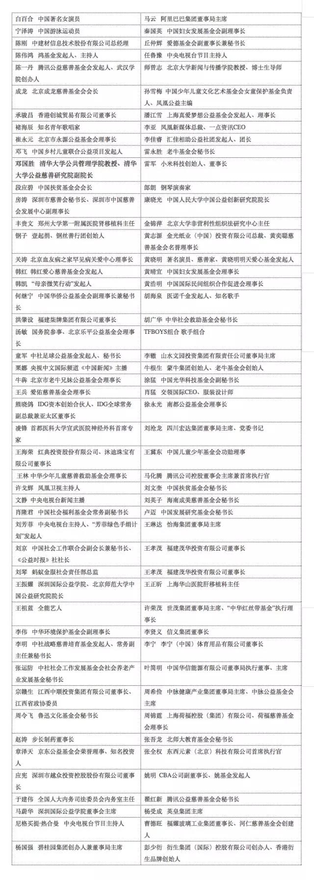 中国公益年会2016年度中国公益人物名单(排名不分先后)