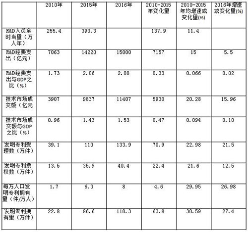 (数据来源:国家统计局编:《中国统计摘要2016》,第174页;国家统计局:《中华人民共和国2016年国民经济和社会发展统计公报》,2016年2月28日;国家知识产权局网站:《国家知识产权局发布2016年发明专利统计数据》,2017年1月19日。)