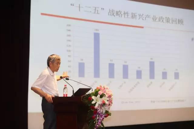 图为清华公管学院院长薛澜在首届战略性新兴产业发展高峰论坛上发表演讲。