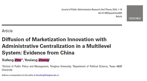 清华公管学院朱旭峰教授与美国德州农工大学政治系博士候选人张友浪近期合著的论文被公共管理顶级杂志Journal of Public Administration Research and Theory (JPART)接收,探讨了行政集权对中国地方政府市场化创新的影响。这也是二人第二次在JPART上合作发文。