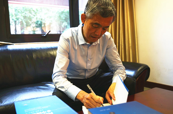 薛澜教授在著作《科技全球化与中国发展》上签名。