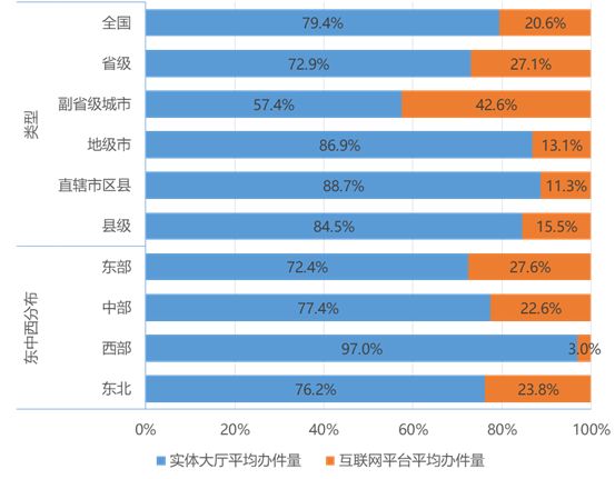 大家看,这边是实体线下的办结量,这个是互联网平台的半结量。除了统计数据的调查之外,也有基于电话、访谈的内容。从这些内容可以看到,非常有意思。比如电话访问,你跟很多政府部门咨询的时候,他都不建议你到网上去办,建议你到线下跑一趟。基于网上大数据的一个调查,很多地方说当地的互联网+服务线上可以办理80%。只要网上预约了,他就说这件事可以在网上办了,实际上存在以偏概全的情况。对于公众表示会尝试网上办理,但更倾向于大厅办理,这是认知问题。我们搞了三年了,大家还是这样一个判断。那如果各个地方搞互联网+政务服务评估的话,这个评估是能够比较说明问题的。有那么多指标,你有没有网站、App,那些东西不能全貌的反映互联网+政务服务的实施情况。