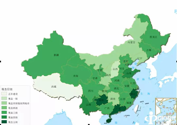 这是一个数据,按照文件要求,我们要形成互联网+政务服务平台的跨层级的覆盖,至少三级政府要打造一体化的政务服务平台。从图上来看,70%以上的地方都在试图做这个工作。真正做到五级联动或者五级一体化平台建设的是颜色比较深的地方,很多地方还没有做到。没有做到就意味着什么?意味着很多政务服务办起来既不能“一门”也不能“一网”,也不能“一次”。