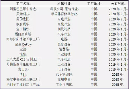 54家数字化灯塔工厂中的中国境内企业(截至2020年9月)