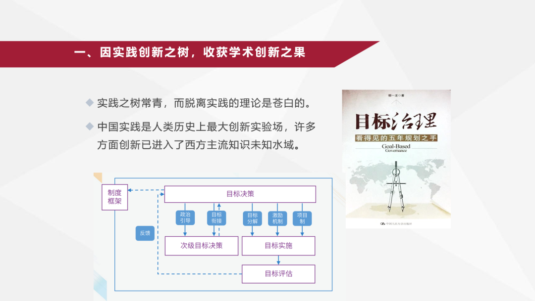 一、因实践创新之树,收获学术创新之果。实践是活的历史进程,实践之树常青,不断汲取实践源头活水的理论之树同样常青,而脱离实践的理论则必然是苍白的。中国实践是人类历史上最大的创新实验场,许多实践已经进入西方主流知识未知水域。许多时候,用西方理论难以解释中国实践,在写博士论文时我就意识到这一点,我博士论文研究主题是中国五年规划,关于国家计划最主流西方理论文献,是经济学家关于计划经济的辩论,然而中国五年规划已经远超计划经济意义上的国家计划。博士论文我就面临着一个选择,要么沿着西方主流理论路径走下去,以名正实,进行削足适履式研究,要么以实立名,量体裁衣,为中国实践创新做一件新衣服。