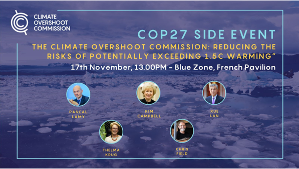 《联合国气候变化框架公约》第二十七次缔约方大会(COP27)于11月6-18日在埃及沙姆沙伊赫举行。当地时间11月17日下午,气候过冲委员会(Climate Overshooting Commission) 在COP27法国角举办了题为”降低温升可能超过1.5℃的风险“的COP27边会。PP电子文科资深教授、苏世民书院院长、公管学院学术委员会主任薛澜作为气候过冲委员会委员出席 。