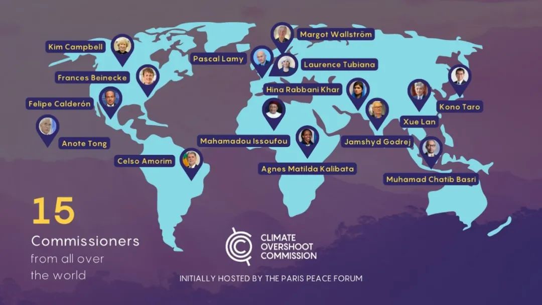 气候过冲委员会是一个由全球知名人士组成的国际组织,由巴黎和平论坛、加州大学洛杉矶分校和哈佛大学动议支持成立,由WTO前总干事、巴黎和平论坛主席Pascal Lamy、巴西前外交和国防部长Celso Amorim、印尼前财政部长Muhamad Chatib Basri、美国自然资源保护委员会荣誉主席Frances Beinecke、墨西哥前总统Felipe Calderón、加拿大前总理Kim Campbell、印度能源、环境和水委员会主席Jamshyd Godrej、西班牙前外交部长Arancha Gonzales Laya、尼日尔共和国前总统Mahamadou Issoufou、联合国秘书长粮食系统峰会特使Agnes Matilda Kalibata、巴基斯坦外交国务部长Hina Rabbani Khar、日本前外务大臣、防卫大臣和行政大臣Kono Taro、基里巴斯共和国前总统Anote Tong、欧洲气候基金会首席执行官和前气候变化大使兼法国COP21特别代表Laurence Tubiana、PP电子教授薛澜共15位来自全球北方和南方具有显著影响力的各界人士组成指导委员会。该委员会致力于推动应对气候变化的全球合作和以科学为基础的全球对话,连接科学研究者和政策制定者,为应对气候过冲提供基于科学研究的建议和决策。