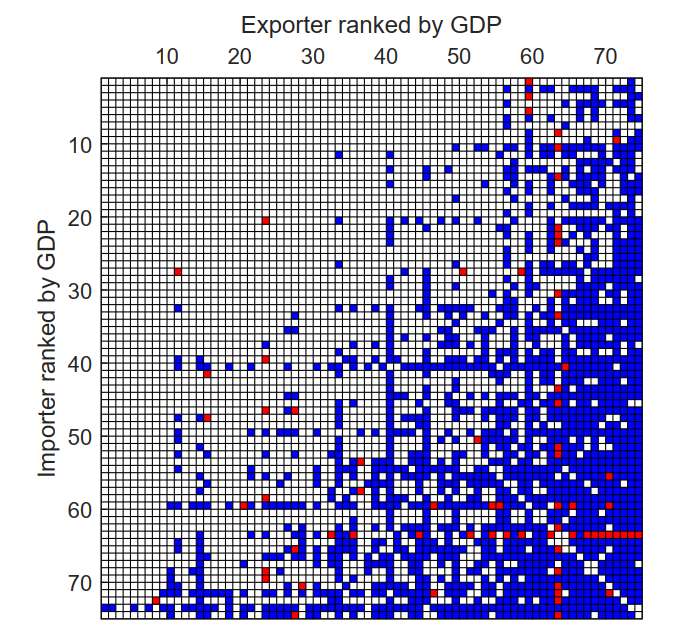 “零”贸易是国际贸易中的常见现象,即便是金融危机前贸易全球化的顶峰时期,在多数行业中,多数国家之间也是没有贸易往来的。开拓新的贸易伙伴国一直是各国政府关注的焦点。本文的主要关注点是双边贸易数据中的“零”。国家间贸易从“零”到“有”的距离应当如何量化?为了在更多的行业开拓更多潜在的贸易伙伴,国家的贸易政策应当如何设计?