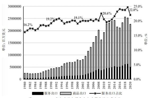 图4 1980-2020年全球服务贸易占全球贸易的比重变化