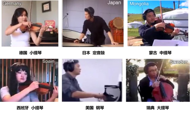 图9 六国音乐家在六地通过5G网络合奏巴赫C小调前奏曲与赋格