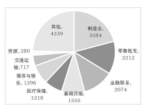 数据次生产业的地位并不亚于数字原生产业。数字化不同于信息化的一个重要特征,就是信息化可以单机单台单厂推动,而数字化需要链接和协同才有价值。数据原生企业的数据来源和处理结果应用主要是传统产业和社会,数据基础设施需要广泛服务于传统产业和社会才有用武之地,工业互联网平台上的智能控制系统需要收集处理全网各个节点各种行为的数据,优化后的模型或解决方案也需要向全网回嵌和释放。虽然实现数字化转型的制造业比重并不太高,但由于制造业总体规模较大,生产过程连续进行,因此产生的数据量规模较大,同时产业数据是b2b(企业与企业间)类型的数据,数据价值化和交易比例较高。据麦肯锡估计(如图14所示),数据在世界范围的流动创造的增加值中,制造行业数据最多,高达3584EB,占比20.87%。由此可见传统产业数据化的巨大潜力。