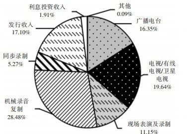 20世纪中期以来,以无线传输技术为代表的信息技术打破了许多服务只能现场提供的约束,提高了服务业的规模效率和贸易效率。文化服务业较早也较明显地体现了这个阶段技术进步的影响。有学者分析了广播电视服务等文化产业在1967~1995年经历的快速发展,指出技术提升了此类服务的流通空间和流通时效,集聚了高级人力、知识产权、技术和文化等要素(厉无畏、王慧敏,2006;黄永林、罗忻,2011)。稍后,为无形服务内容提供有形载体的技术和产业快速发展,进一步突破了更多服务的现场约束问题。例如音乐会的演出可以批量制作成音像制品,既可以错期观赏,也可以远距离传送,实现了大规模生产和远程贸易。美国是全球最大的音乐版权管理市场,2001年通过现场表演及录制方式的收入(216.40百万美元)仅占到了全部音乐版权收入(1940.42百万美元)的11.15%,而和信息技术相关的业务贡献了86.85%的收入,利息投资和其他收入占比2.00%(见图7)。