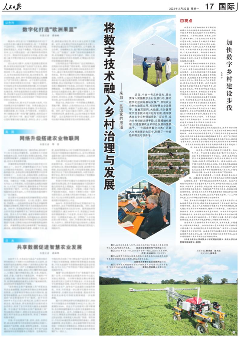 世界不少国家和地区的乡村都曾因城镇化的快速推进面临各种挑战,而数字技术革命给农业发展和乡村治理带来全新改变。以移动互联网、大数据、云计算、物联网和人工智能为代表的数字技术蓬勃兴起,为传统农业转型升级和乡村治理现代化创造了前所未有的机遇。将数字技术广泛融入农业产业发展的各环节,利用数字技术服务乡村发展和治理,已成为世界潮流。部分国家和地区在开展数字乡村建设和智慧农业方面的实践起步较早,形成了具有借鉴价值的发展模式和路径。