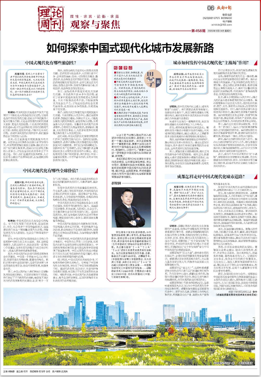 成都日报:成都是国家中心城市、成渝地区双城经济圈极核城市。胸怀“国之大者”、牢记“省之大计”,聚焦成都的时代使命和独特定位,成都应该怎样走好中国式现代化城市道路,加快建设中国西部具有全球影响力和美誉度的社会主义现代化国际大都市?