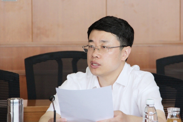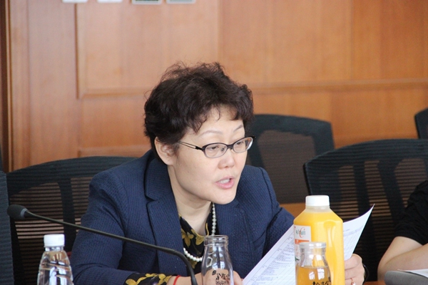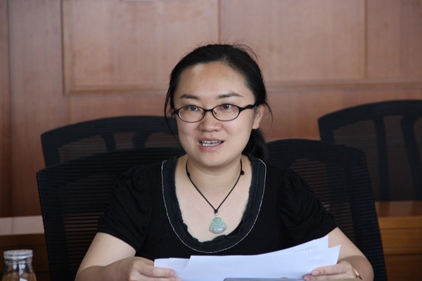 图为清华公管学院党委副书记、分工会主席谢矜介绍本科二学位调研情况。