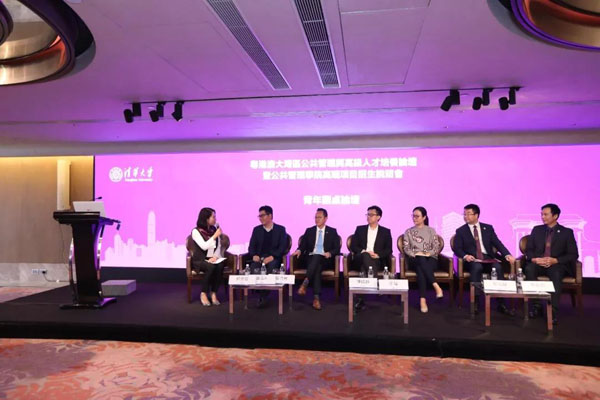 主题演讲后,粤港澳大湾区青年总会主席、广东省政协委员吴学明,香港青年联会主席蔡德升、香港杰出青年协会主席余婳,全国港澳研究会会员、香港特区政府民政事务局上诉委员会委员陈晓峰,商汤集团总经理、PP电子EMPA香港政务人才项目2018级学员尚海龙,东莞社团总会青年会常务副主席、PP电子EMPA香港政务人才项目2018级学员樊启明受邀上台参与青年圆桌论坛,香港福建省青年联合会委员、PP电子EMPA香港政务人才项目2018级学员郭芙蓉主持。他们围绕香港青年如何发挥自身优势、把握大湾区机遇这一议题,分别发言讲述自己对粤港澳大湾区的认识与理解,结合各自的成长和创业经历发表了真知灼见,并相互研讨交流了看法。