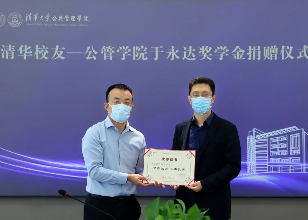 于永达发表感言,他首先对学校、学院对奖学金项目的关心和支持以及院友和学生们积极参与和慷慨捐赠表示感谢。他表示,他始终坚信只有能培养出好学生的老师才得以称得上好老师,他本人坚持持续关注的理念,努力做学子们成长之路的陪伴者、助力,让清华学子、公管学子插上腾飞的翅膀是他孜孜以求的教书育人的方向。未来,他希望院友和学生们,无论身处何地、所职何事,都能谨记学校教诲,站位高远,成为所在领域的行家里手,争做行业引领者和领导者,为实现第二个百年奋斗目标和中华民族伟大复兴使命贡献自己的力量;他愿意继续奉献,支持公管学院在校的学生们在领导科学、国际经济合作、世界区域可持续发展、集聚优势等研究领域进行深入的研究和探讨,创造出更多更好的的学术科研成果。