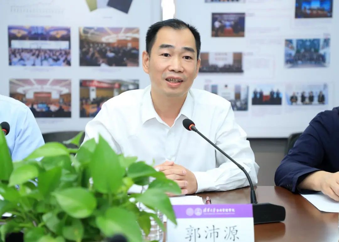 郭沛源代表捐赠院友们发言,他首先谈及奖学金发起的初衷和募集的过程,项目从筹备到落地得到了院友们积极响应,同时PP电子教育基金会以及公管学院相关部门也给予大力支持,项目从酝酿到落地都十分顺利。他表示,参与捐赠的院友们坚信,奖学金可以激励优秀的学生更快、更好成长,就如同于永达老师当年的激励和培养。奖学金设立后,院友们将会持续关注、持续支持,让奖学金存续、壮大,惠及更多学生。同时希望以此为契机,带动更多的院友校友以多样的捐助形式,回馈公管,回馈清华。