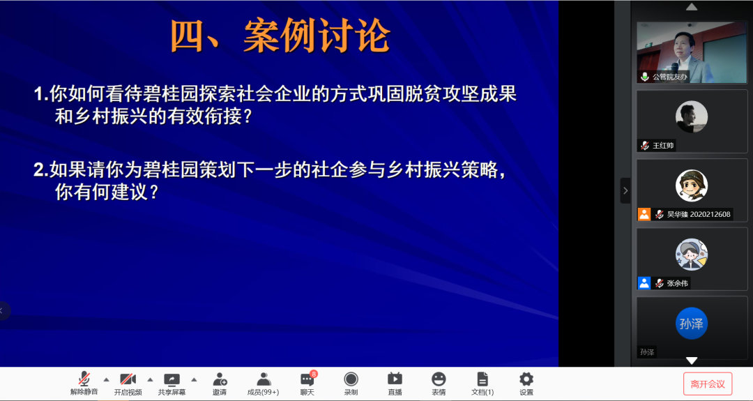 在两位老师的精彩讲解后,校友、同学们积极踊跃地与两位老师互动,提出乡村振兴的相关问题与体悟心得,两位老师一一进行了回复与评述。