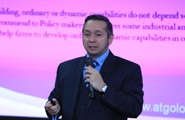 福鑫(Alessandro Golombiewski Teixeira)教授以《动态能力—产业和创新政策解析(Dynamic Capabilities —An Industrial and Innovative Policy Approach)》为题进行了讲座。他指出,公共政策是二十一世纪最重要的议题。当前国家治理中面临着一系列复杂的问题,而国际化治理,包括促进贸易、跨国投资和国际合作才是解决问题之道。他认为,动态能力是企业最终建立核心竞争力的关键之一,政策制定者应帮助企业建立其自身的动态能力,以便更好的构建国家竞争力。此外,福鑫强调,除了与世界各地的学术研究者分享自己的研究成果外,他还希望能够在清华这个平台上,进一步推动拉丁美洲与中国间的学术交流,并为发展中国家提供更大的帮助。