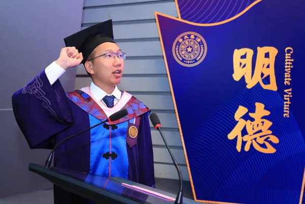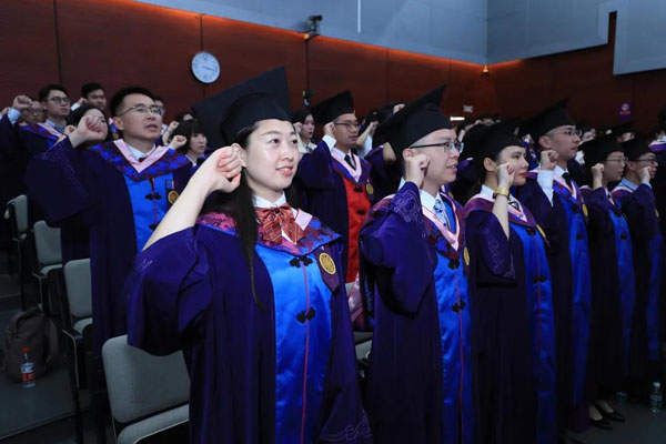 毕业宣誓是清华公管学院毕业典礼的传统,2018级MPA毕业生周献人带领全体毕业生进行了宣誓。