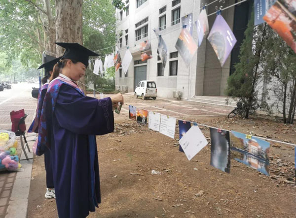 今年的毕业典礼还设置了“展信如晤,毕业留言卡”环节,学院准备了精美的明信片。未能到现场参加毕业典礼的毕业生同学将有机会获得由在现场参加毕业典礼的同学填写、由学院统一邮寄的留言祝福。填写明信片的同学,将得到学院提供的布偶纪念品。截止典礼合影结束时,共收到填写50余份明信片,并有很多在场同学申请带上多张回家填写。