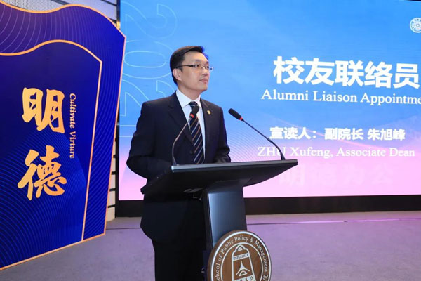副院长朱旭峰宣布了学院2021年校友联络员,他们分别是2016级博士毕业生凌争、2018级学术硕士生毕业生高握奇、2019级学学术硕士毕业生余虓、2017级MPA毕业生杜洋、2018级MPA毕业生张晓毅、2018级MPA毕业生张瑾、2018级MPA毕业生周献人。每年学院都会在毕业生中遴选热心为同学服务的代表作为校友联络员,他们毕业后将肩负起联络校友的工作,积极为学院和校友搭建桥梁,助力学院的院友工作。