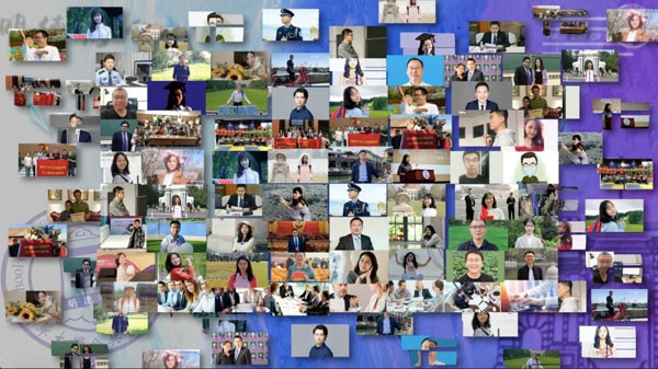 典礼上播放了毕业生感言视频,来自于祖国各地、世界各国的毕业生,怀着对学校、学院、对老师同学的感激和不舍,纷纷送上了真挚的寄语。