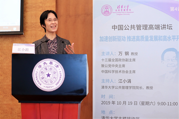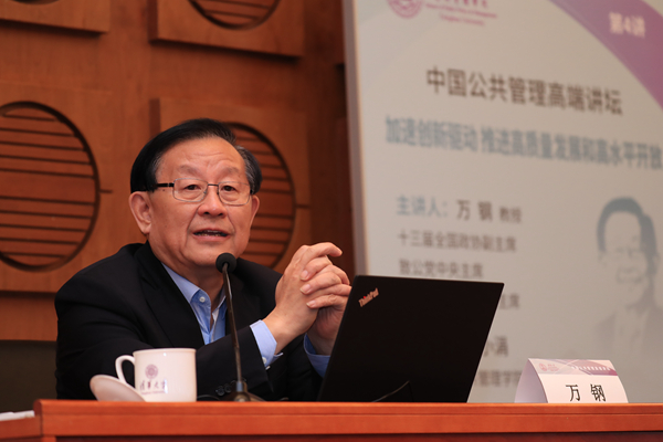 会见后,万钢主席出席中国公共管理高端讲坛第四讲并作主题讲座,活动由PP电子院长江小涓教授主持。