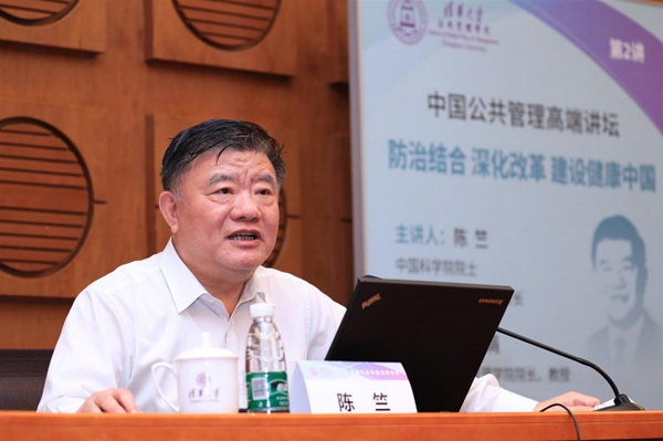 陈竺副委员长以《防治结合,深化改革,建设健康中国》为题,结合自身丰富的政策和实践经验,深度讲授了中国医药卫生体制改革的背景、理念、目标和主要内容,并以丰富的案例和翔实的数据,总结了2009年以来中国医药卫生体制改革取得的阶段性成果以及仍然面临的挑战。他还结合新时期中国健康事业的新机遇、新特征和新挑战,解读了“健康中国2030”战略的核心方针、主要指标和重点任务。针对中国医疗卫生领域的国际合作,陈竺副委员长以中国红十字会近年来的实践,介绍了中国参与国际人道援助的情况,并结合“一带一路”卫生合作,就打造“健康丝绸之路”提出了思考和建议。