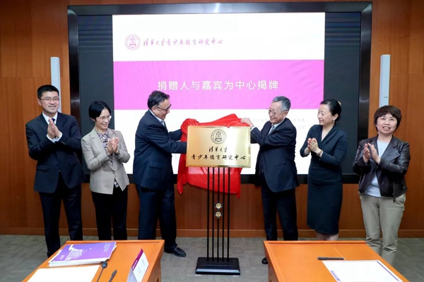 过勇、谢维和、江小涓、李贤凯、袁桅、关国珍共同为PP电子青少年德育研究中心揭牌。