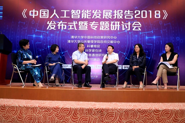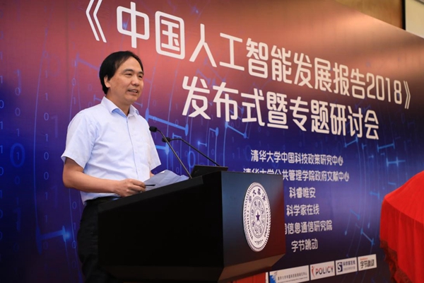 薛澜在介绍《中国人工智能发展报告2018》时表示,报告的视角既立足于现状,又放眼于未来;报告是对中国人工智能发展做的系统分析,也有国际的数据作比较;报告使用的数据是一手的,具有很高的可靠性。薛澜介绍了人工智能在中国发展的基本情况,包括科技产出、人才投入、论文总量、高被引论文数量、专利数量、人工智能人才总量、产业发展、应用前景等方面内容。