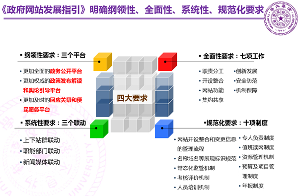 (三)国务院办公厅制定出台《政府网站发展指引》,首次从国家层面对全国政府网站的建设、管理和发展做出的顶层设计,为全国政府网站未来三至五年的有序健康发展提出了纲领性、全面性、系统性、规范化的明确要求。