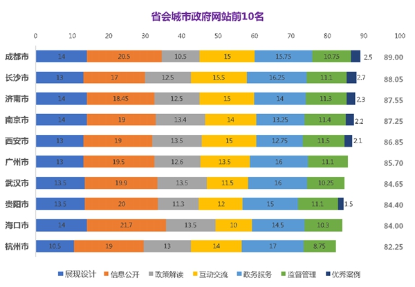 省会城市政府门户网站前十名:1.成都市,2.长沙市,3.济南市,4.南京市,5.西安市,6.