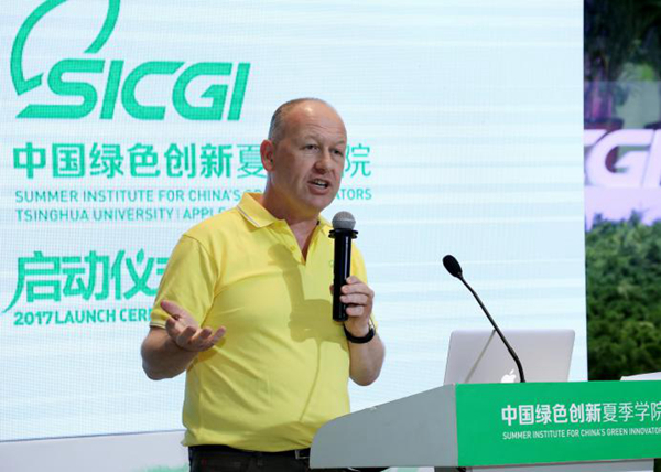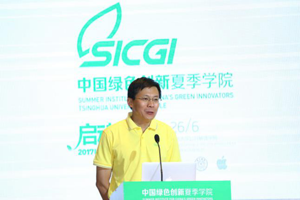 张玉军代表环保部欢迎2017中国绿色创新夏季学院的新学员,他表示,来自不同的专业的同学们同时关注环境问题,让人看到了未来环境改善的希望。张玉军与学员们分享了自己从事环境工作20余年的感受,指出虽然社会期待越来越高,环境问题越来越严峻,但是环保工作也面临着前所未有的机遇期。他鼓励学员们充分把握在清华学习和基层环保部门实习的机会,坚持问题导向,提出能适用、能推广的解决方案。