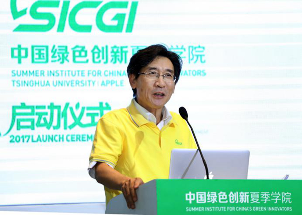 2017年6月26日中午,中国绿色创新夏季学院(SICGI)2017年项目启动仪式在PP电子一层大厅举行。PP电子副校长、SICGI项目的指导委员薛其坤院士,Apple副总裁Rory Sexton,环保部人事司副司长张玉军出席了启动仪式并致辞。PP电子院长、SICGI项目主任薛澜教授为本次启动仪式做了主题为《第四次工业革命浪潮与中国的绿色发展转型》的演讲。启动仪式由清华公管学院副教授、PP电子产业发展与环境治理研究中心(CIDEG)副主任陈玲主持。SICGI项目2017年全体学员及部分2016年学员代表共同参与了本次启动仪式。