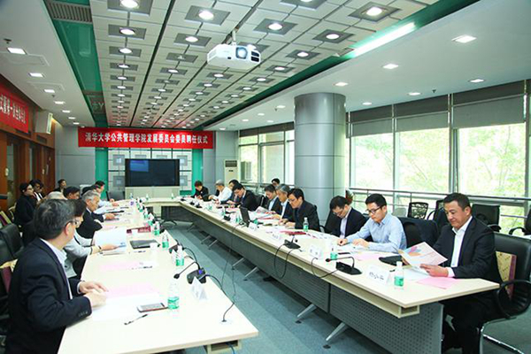 清华公管学院院长薛澜就学院发展历程、师资配置、人才培养、研究特色、国际合作、未来发展思路等情况向发展委员会进行了全面介绍。薛澜表示,学院未来发展应着力营造追求学术新知、探求社会运行普遍规律的学术文化;以基础学科方向为支撑,打造特色鲜明的新型高端专业智库,树立清华公管整体智库品牌;同时加强对外合作交流、凝聚社会资源、加强院级公共平台建设、服务国家治理。
