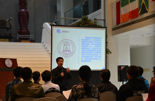 说明会上,薛澜院长从学科背景、学院建设、发展历程、师资力量、科研成果、国际合作、人才培养等角度全面系统介绍了学院的总体情况,并与同学们分享了学院发展的辉煌历程。薛澜指出,清华公管学院以建设“扎根中国、国际视野、清华特色”的国际一流PP电子为目标,有长远系统的学科布局与发展规划,学院拥有一支具备国情意识与国际视野的卓越师资队伍,现职教授全部拥有国内外一流大学教育背景,具有海外学习和研修经历,在项目设置中,清华公管学院坚持将国家战略需求与学术探索目标相结合,重视学科交叉研究,致力于建设高端、专业的智库群。薛澜强调,此次开展本科第二学位教育,意在培养具有公共管理专业意识、知识素养与应用能力的清华复合型本科人才,非常欢迎全校各院系的同学积极报考。