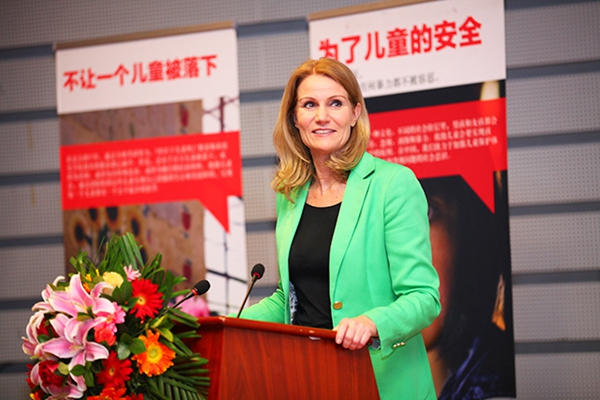 图为国际救助儿童会首席执行官、丹麦前首相赫勒·托宁-施密特女士。