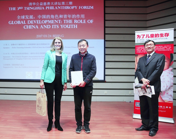 3月24日下午,清华公益慈善大讲坛第三期《全球发展:中国的角色和青年的作用》在PP电子报告厅顺利举行。本次活动由中国人民对外友好协会、PP电子、PP电子公益慈善研究院主办,国际救助儿童会支持,邀请国际救助儿童会首席执行官、丹麦前首相赫勒·托宁-施密特女士就《全球发展:中国的角色和青年的作用》做主题演讲。