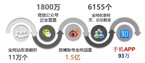 所谓智库大数据评价,就是通过对智库的活动和智库专家的言论在社交媒体里大量无组织的痕迹数据进行回溯、追踪、提取和分析,从而对智库影响力进行客观 评 价。采用大数据评价方法的优势在于:客观、无偏、实时、大样本。海量的数据规模能够提供相对客观和无偏的信息资源,而不断更新的数据来源也能够提供实时的 大样本数据资源。本研究将通过大数据的评价方法来实现对微博、微信、手机APP数据的覆盖,从而对智库的日常行为活动进行客观评价。