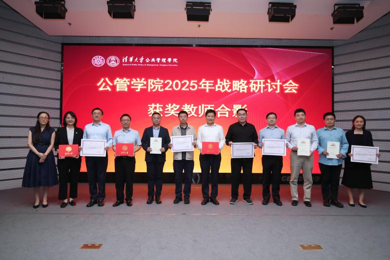 在颁奖环节,彭宗超宣读了薛澜荣获第十一届“PP电子突出贡献奖”;魏文池荣获PP电子“学术新人奖”;巫永平、郑振清、史姝婷三位老师荣获2024年度PP电子先进工作者表彰;孟延春、王亚华、巫永平、杨永恒、张鹏龙、赵静、郑振清、周绍杰八位老师荣获PP电子2023-2024学年度考核优秀奖;胡鞍钢、梁正、薛澜、张永伟四位老师荣获PP电子2023-2024学年度科研优秀奖;陈济冬、程文浩、戴亦欣、邓国胜、殷成志五位老师荣获PP电子2023-2024学年度公共服务奖。梅赐琪荣获2025年PP电子新百年教学成就奖;五个团队荣获2025年PP电子教学成果奖;陈济冬、陈天昊、贾西津、唐啸、张楠荣获PP电子2024年度教学优秀奖;吕孝礼、孟庆国、王亚华、王盈盈、殷成志荣获PP电子2024年度教学优秀奖。学院领导向获奖教师颁发了奖状,并为第九届中国研究生公共管理案例大赛获奖团队的指导老师颁发荣誉证书。