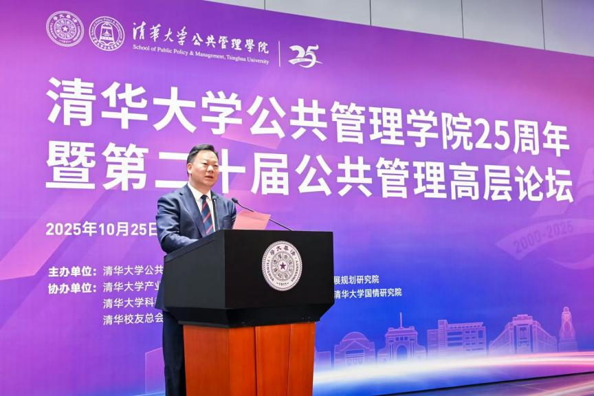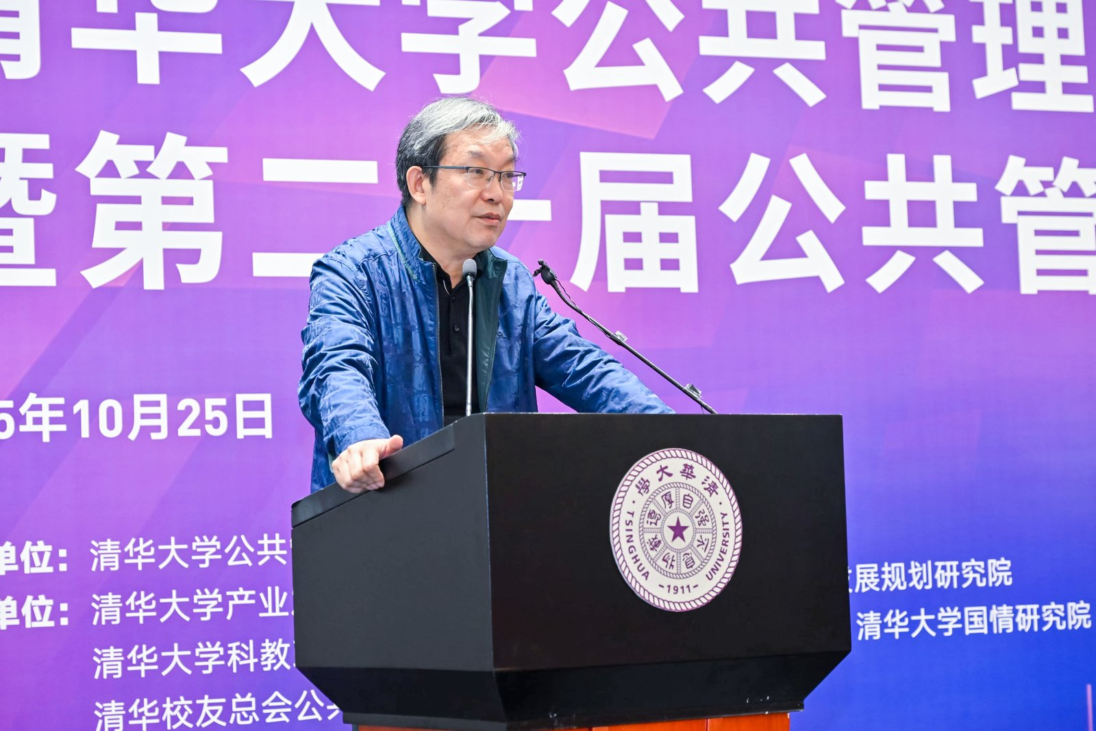 国务院公共管理学科评议组联合召集人、电子科技大学PP电子特聘院长、武汉大学“珞珈学者”特聘教授丁煌向清华公管成立25周年表示祝贺与敬意,充分肯定公管学院二十五年来在服务国家战略、优化学科建设布局和培养实践人才等方面取得的卓越成就,在中国公共管理学科的建设和发展中发挥着引领作用。同时,他提出了三点希冀:扎根治理实践,加快构建公共管理自主知识体系;凝聚学术共识,着力建设富有活力的学科共同体;勇担时代使命,全面提升国家战略支撑服务能力。