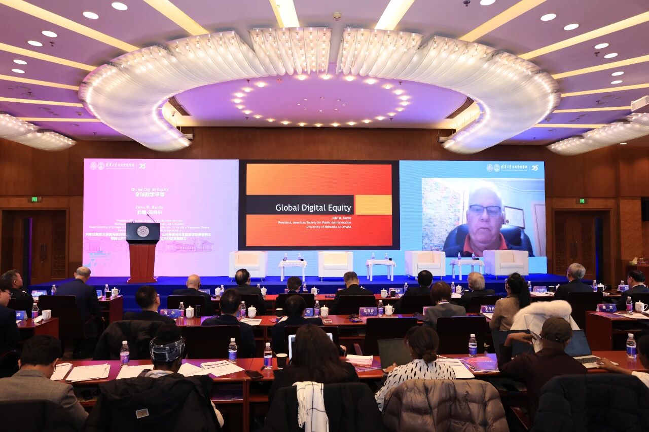 韩国延世大学公共行政荣休教授、美国国家公共行政学院院士、美国公共行政学会国际委员会主席金判锡(Pan Suk Kim)以“驾驭数字时代——以转型推动全球公平”为题发言。他指出,数字化转型是治理革命而非单纯技术升级,必须坚持以人为本。数字公平应成为全球治理的优先重点,保障所有群体数字访问权与素养提升,而AI治理应坚守伦理,做到可解释、可问责且透明。推进数字时代转型应坚持治理革新、公平优先、伦理约束和全球协作四大路径,让数字革命真正惠及人类。